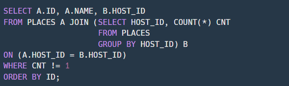 PLACES A JOIN (SELECT HOST_ID, COUNT(*) CNT