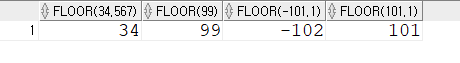 select floor(34.567), floor(99), floor(-101.1), floor(101.1)